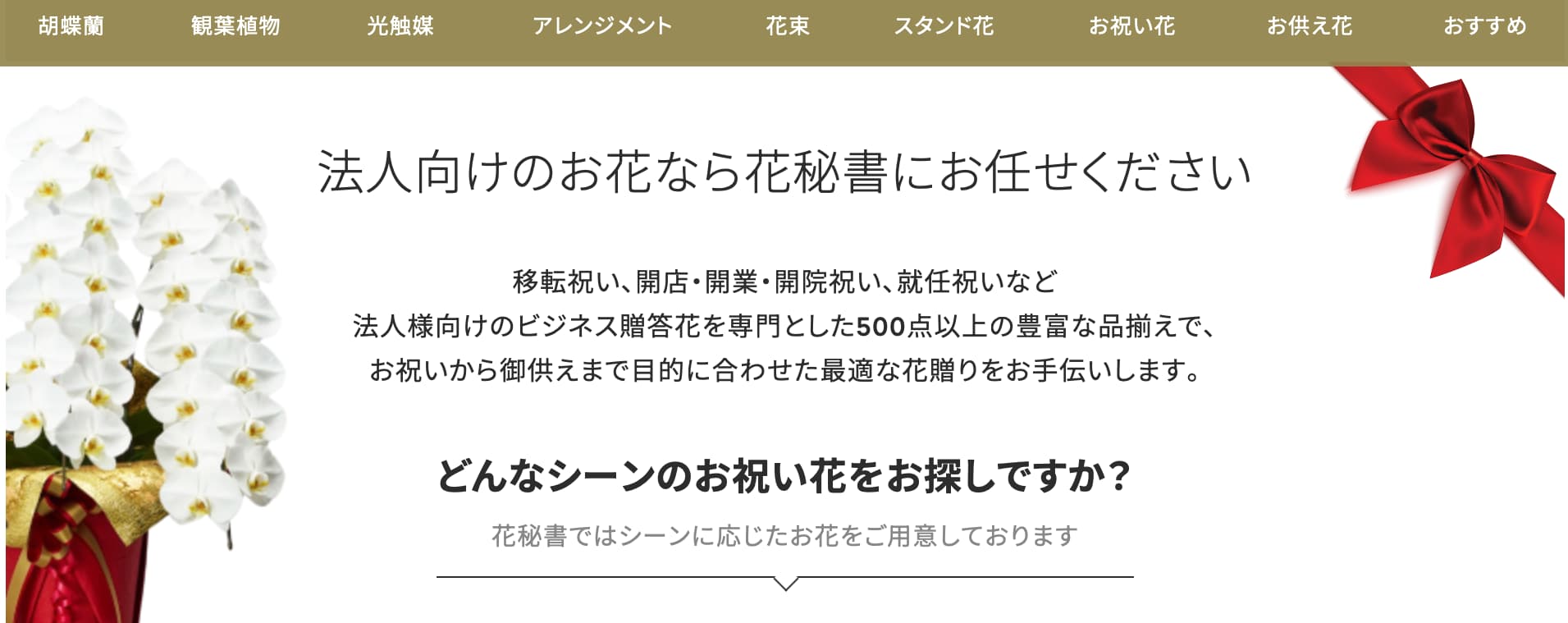 多くの法人様にも愛用されているフラワーギフトの通販サイト。