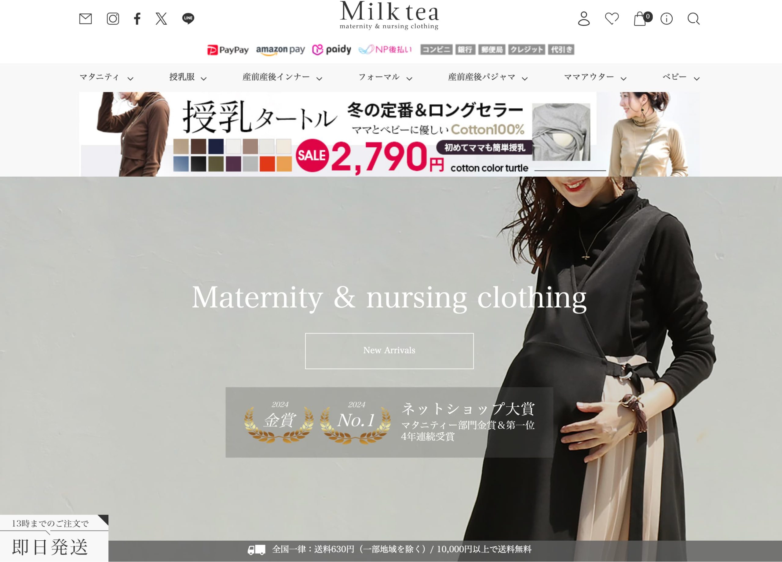 妊娠初期から産後までの女性のためのファッション通販サイト。