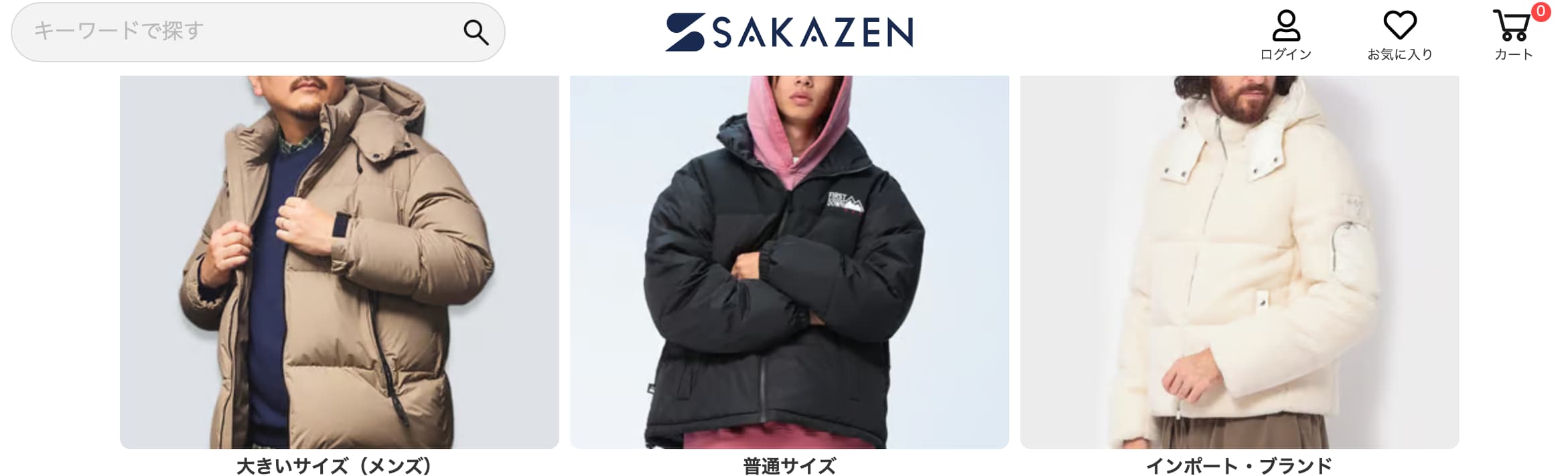 普通サイズと大きいサイズのメンズ服を展開するフッション通販。