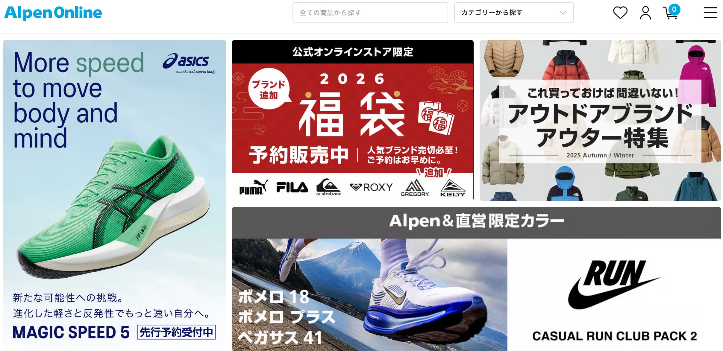 アウトドア用品の他に登山用品も充実している通販サイトです。