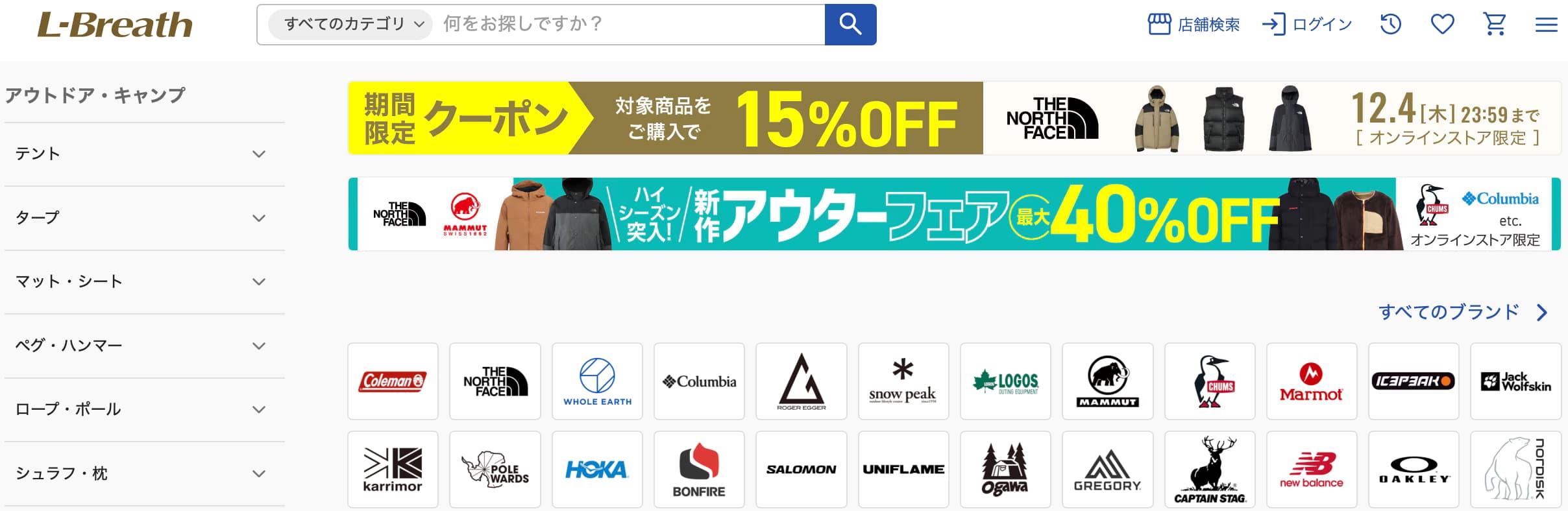 40,000点以上ものアイテム数を誇るアウトドア用品通販サイト。