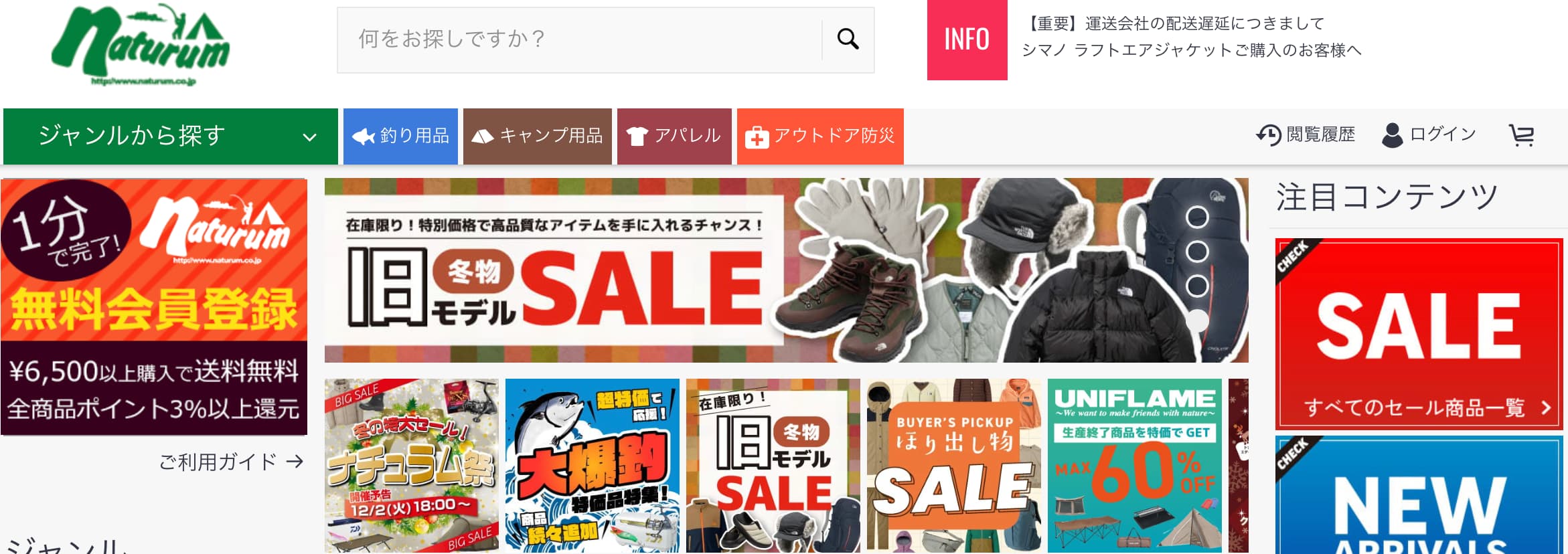 アウトドア用品も豊富ですが、同じくらい釣り用品も充実している通販サイトです。