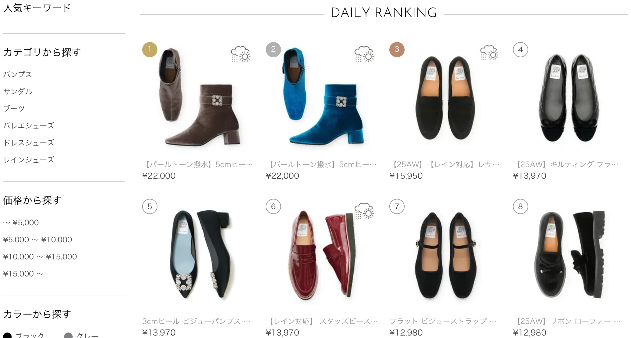 パンプスやスニーカー、ブーツ、ローファー、フラットシューズなど豊富に揃っています。